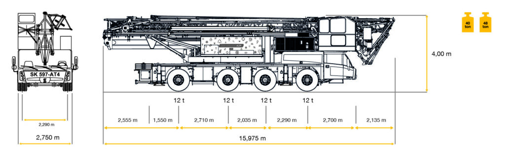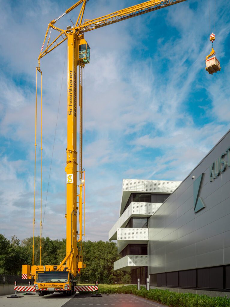 Con un raggio di 48 metri e un’altezza massima di sollevamento di oltre 58 metri, questa gru è perfetta per progetti urbani, l’industria e l’edilizia residenziale. Solleva senza sforzo 7.000 kg senza zavorra aggiuntiva ed è operativa in pochissimo tempo. La SK597-AT4 eLift è la scelta ideale per le aziende che vogliono combinare affidabilità, flessibilità e sostenibilità ambientale.