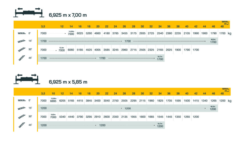 | Portata max. | 7000 kg (fina a 14.1 m) |