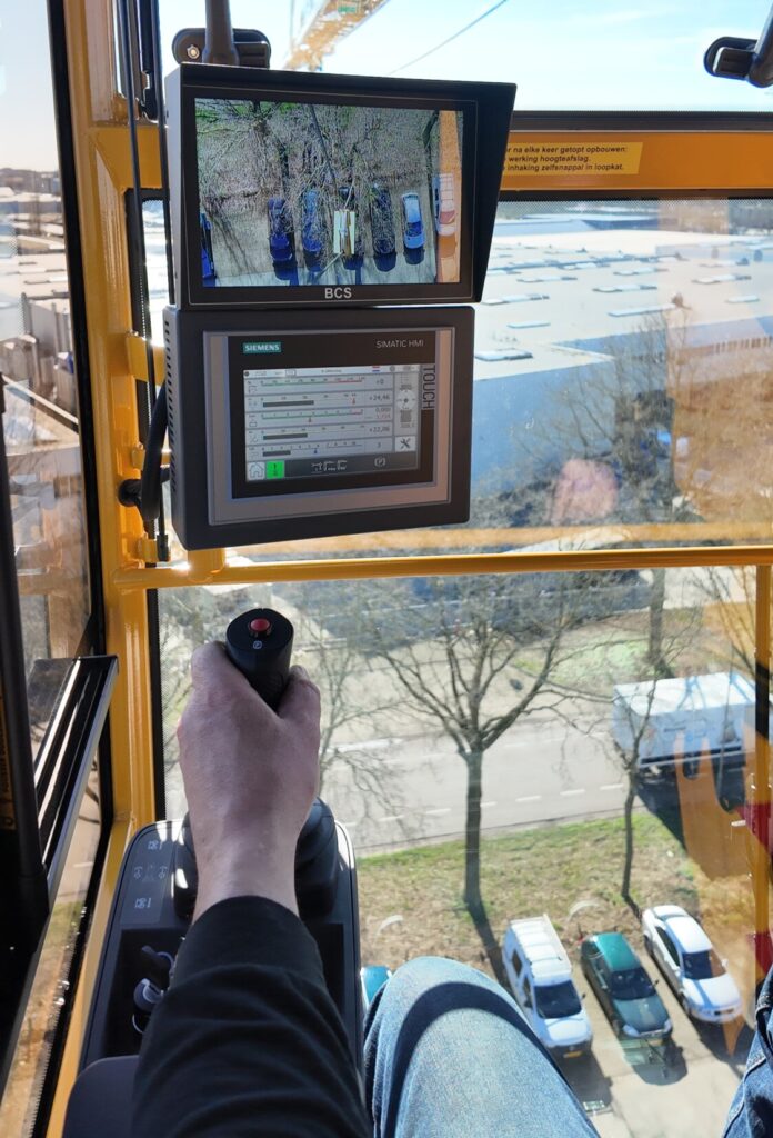 Het oorspronkelijke cabineontwerp stamt uit de jaren ’90 en heeft zich jarenlang bewezen in de praktijk. De huidige uitvoering, sinds 2026 in gebruik, bouwt daarop voort en sluit aan op hoe er vandaag wordt gewerkt: langere werkdagen, repeterende hijsbewegingen en wisselende omstandigheden waarin zicht, rust en beheersing bepalend zijn.